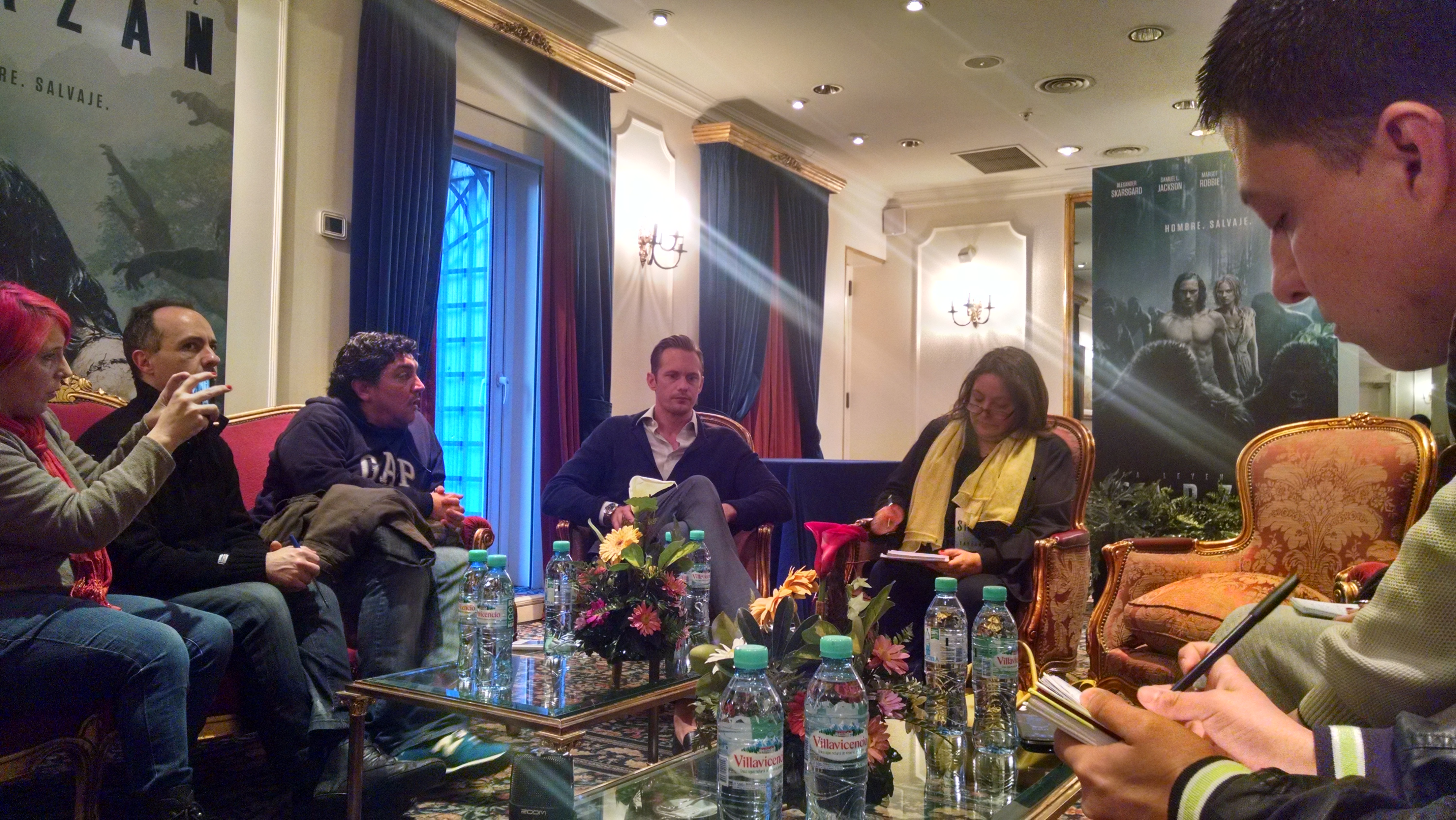 ¡Ah! La charla Alexander Skarsgård! Sentado en un sillón afrancesado, el sueco saludó siempre con una sonrisa. Estrechó a todos y todas sus manos grandes, no tanto como las que exhibe en el film y se dispuso a repetir las respuestas que ya dio en las paradas anteriores de la gira promocional. A saber:
