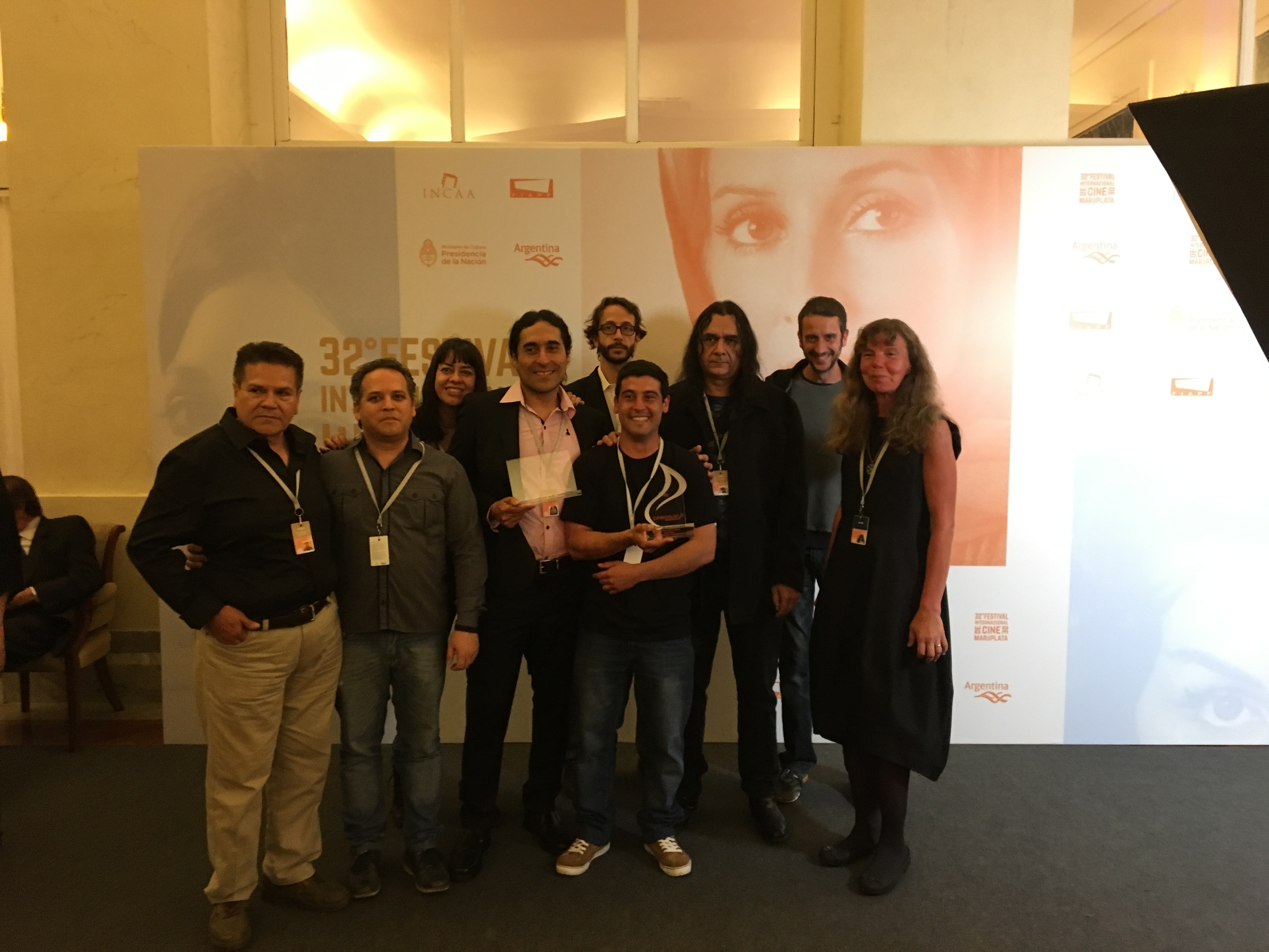 José Cestino Campusano con el equipo de "Azote", Mejor Película de la Competencia Argentina.