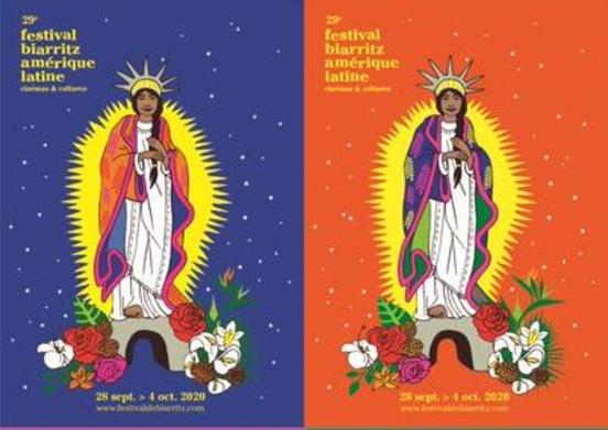 El cartel, obra del taller Mêlé, mezcla la iconografía de la virgen mexicana de Guadalupe con la Estatua de la Libertad de Nueva York, en una imagen que representa el trasfondo de la programación especial del certamen de este año.