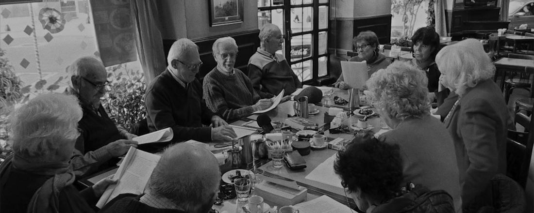 María Álvarez registró varios de sus encuentros entre 2015 y 2019 insertándose en el lugar para observarlos de cerca, y captar sus gestos, el goce al leer, los intercambios de palabras y las miradas entre ellos, o del mozo del bar que los escucha.