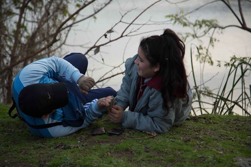 Tati además tiene que arreglárselas con su condición de mujer en ese contexto de precariedad y todo se le hace más difícil. Encontrarse con lo que quiere ser, con su deseo y su sexualidad. Un desafío que va resolviendo como puede, entre otras maneras, imitando. Convencida a medias pero con curiosidad, pintándose con el maquillaje que le roba a otras chicas o tratando de seducir tímidamente al chico del bote. Algo que se expresa bien en una sencilla y muy lograda escena donde primero observa a un grupo de chicas que ensayan una coreografía y luego lentamente se va sumando a ellas sin decir palabra.
