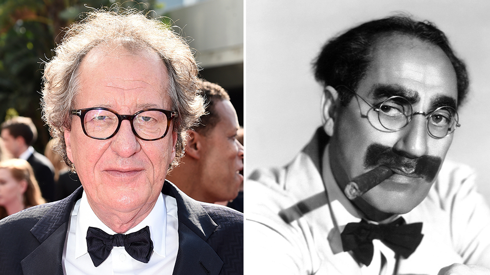 El actor australiano Geoffrey Rush interpretará a Groucho Marx en una próxima biopic sobre el icónico comediante y actor estadounidense titulada Raised Eyebrows, basada en un libro de memorias escrito por Steve Stoliar, secretario personal y archivista de la figura del vodevil durante sus últimos años.