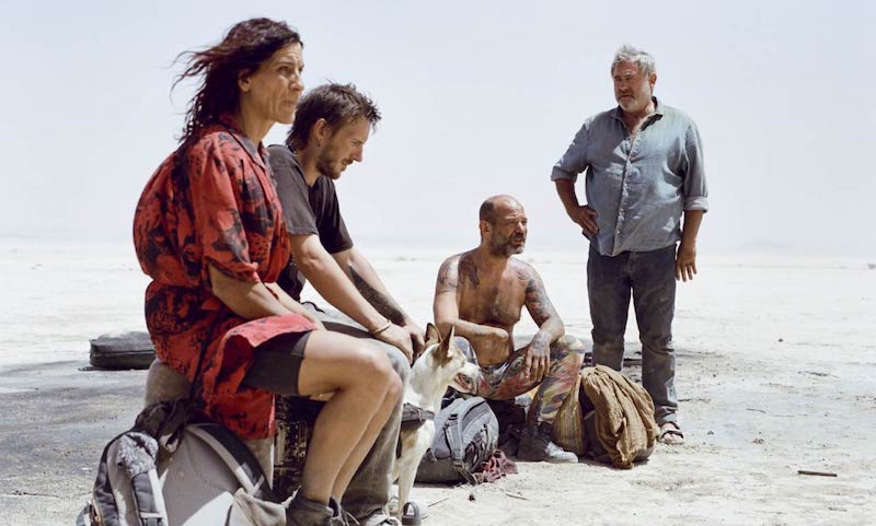 Lo que buscan los otros personajes es aún menos claro. Parecen dirigirse a un lugar del que oyeron hablar pero no saben si existe. O están escapando de algo. Son personajes que se ven curtidos, con cicatrices de la vida, algunos directamente tullidos. ¿Buscan sanación? ¿olvido? ¿un paraíso? ¿un refugio? ¿algún tipo de solidaridad entre pares? Algo de esto último parecen haberlo encontrado. Lo que hay es una pulsión, un ansia de movimiento que también podría ser pulsión de muerte. Lo que están buscando todos en cierto punto pasa por algo más interno, más elusivo, como un espejismo mental.